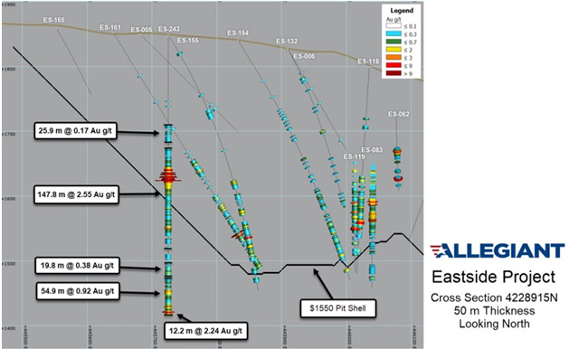 Peter Gianulis, CEO of Allegiant Gold, commented: “The results from the recent drill program at Eastside are simply the best received since Allegiant made the initial discovery. The project has exceeded our expectations and continues to improve and positively surprise us with its potential. We remain focused on executing our business plan and are well on our way to outlining a multi-million-ounce deposit at Eastside.”